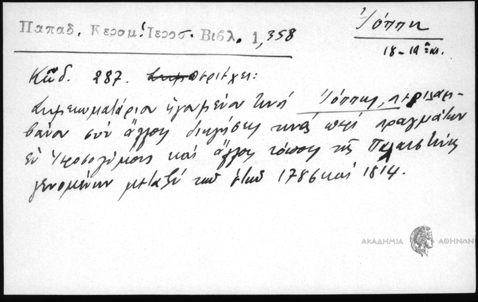 - Προσωπογραφικό και τοπωνυμικό αρχείο (15ος-19ος αι.)