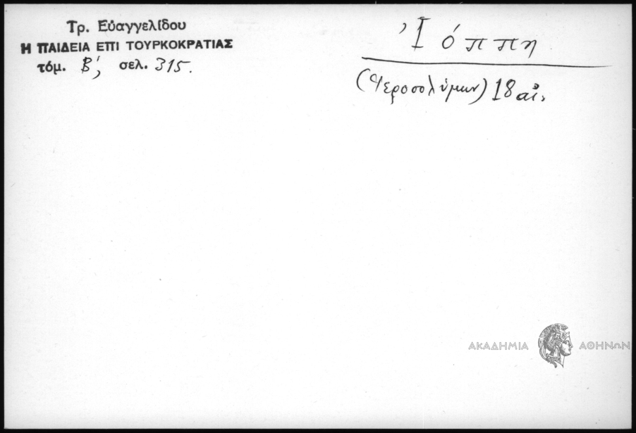 - Προσωπογραφικό και τοπωνυμικό αρχείο (15ος-19ος αι.)