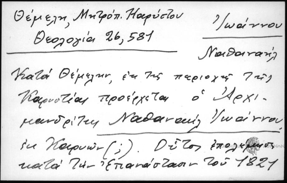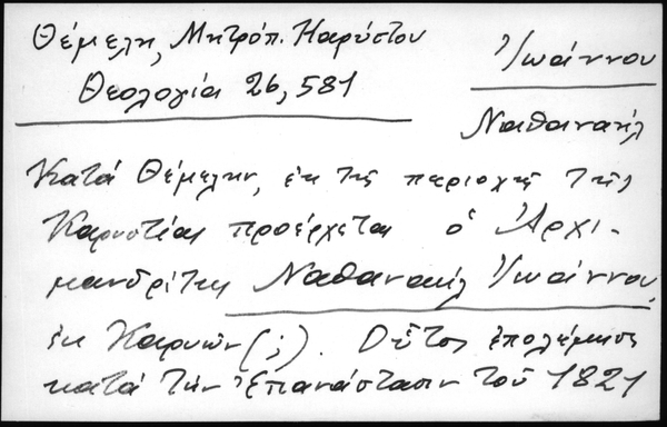 - Προσωπογραφικό και τοπωνυμικό αρχείο (15ος-19ος αι.)