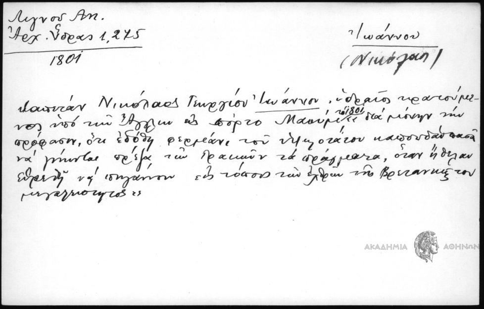 - Προσωπογραφικό και τοπωνυμικό αρχείο (15ος-19ος αι.)