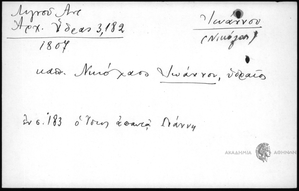 - Προσωπογραφικό και τοπωνυμικό αρχείο (15ος-19ος αι.)