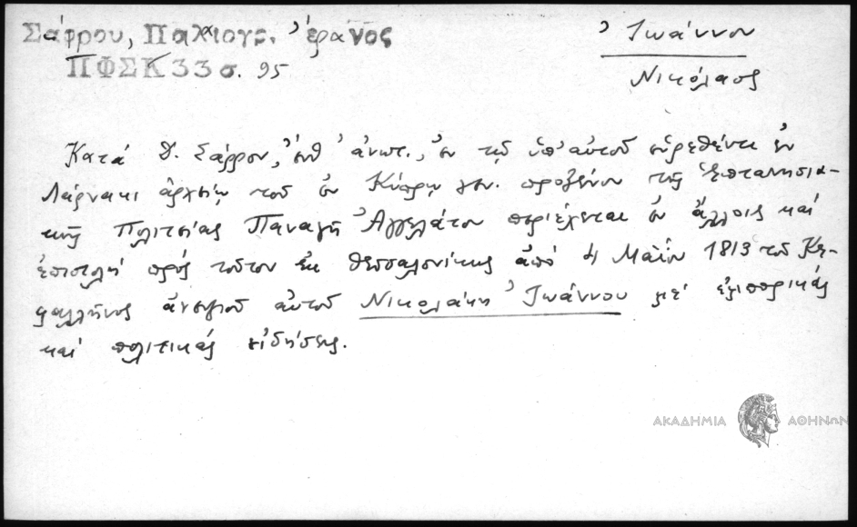 - Προσωπογραφικό και τοπωνυμικό αρχείο (15ος-19ος αι.)