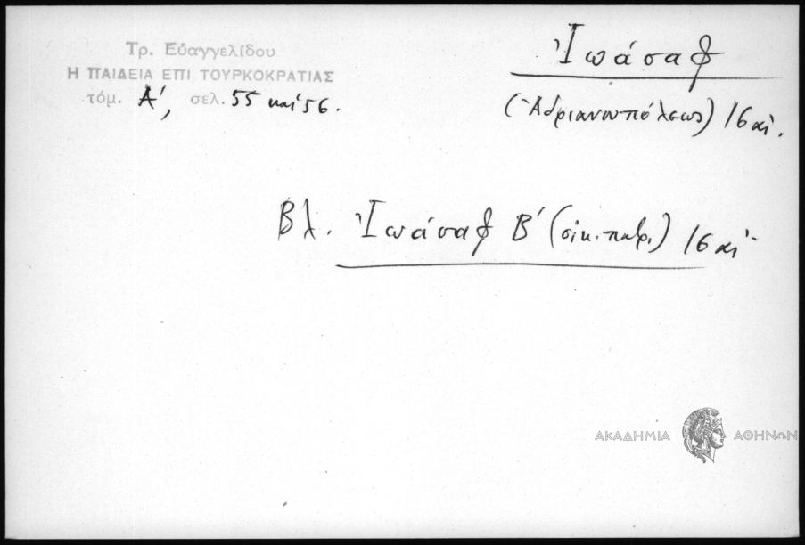 - Ιωάσαφ, Μητροπολίτης Αδριανουπόλεως