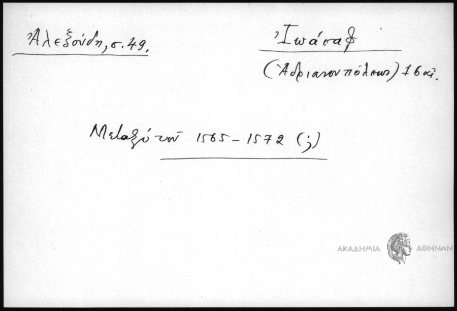 - Προσωπογραφικό και τοπωνυμικό αρχείο (15ος-19ος αι.)