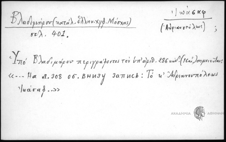 - Προσωπογραφικό και τοπωνυμικό αρχείο (15ος-19ος αι.)