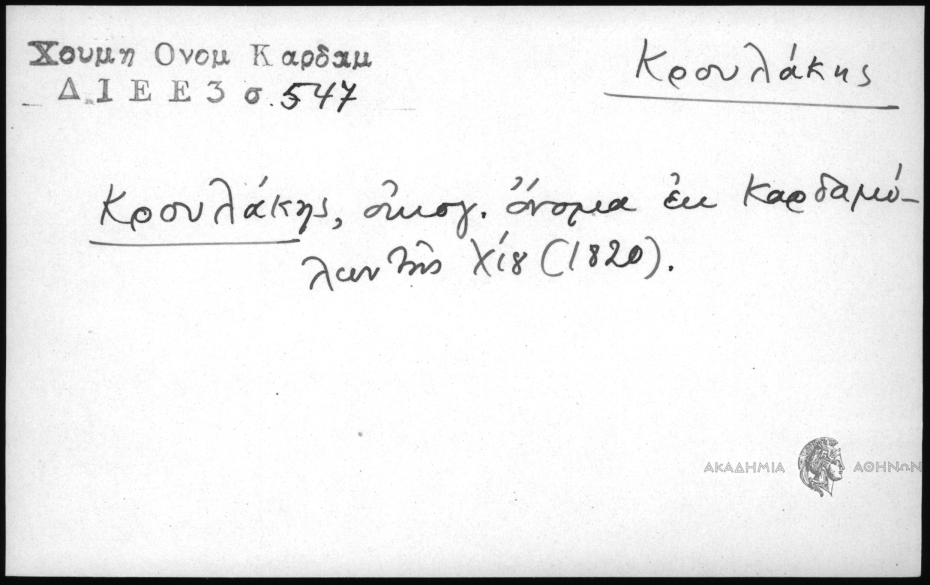 - Προσωπογραφικό και τοπωνυμικό αρχείο (15ος-19ος αι.)