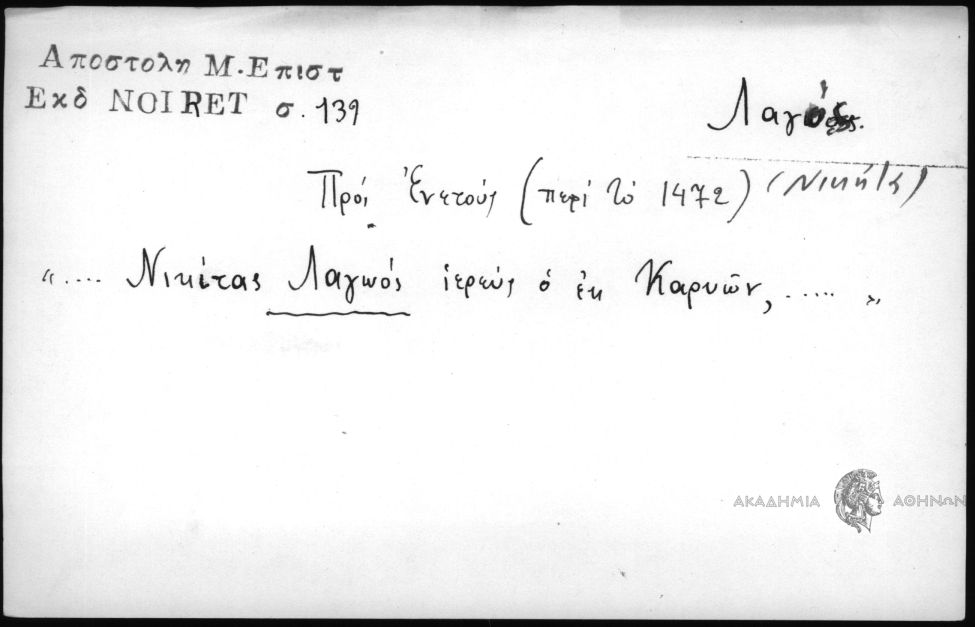 - Προσωπογραφικό και τοπωνυμικό αρχείο (15ος-19ος αι.)
