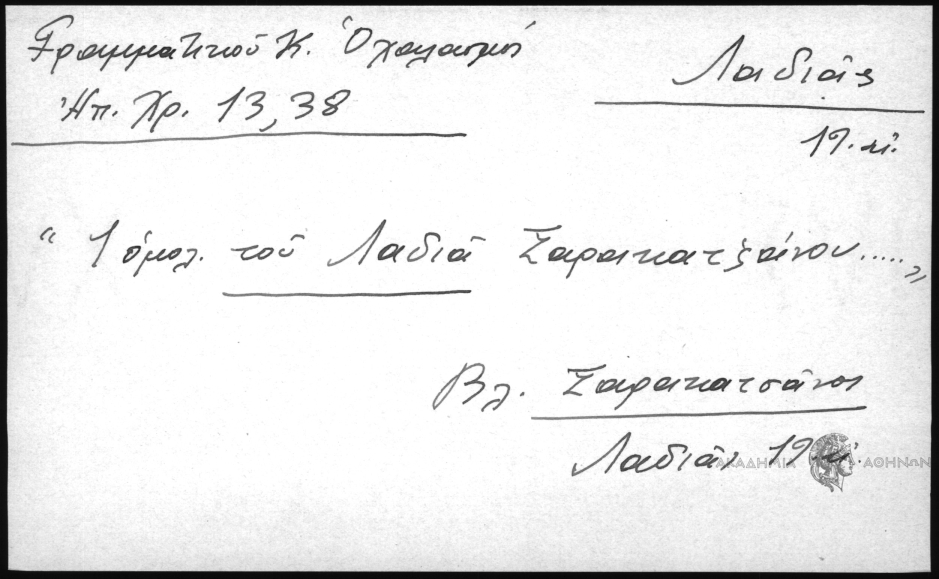 - Προσωπογραφικό και τοπωνυμικό αρχείο (15ος-19ος αι.)