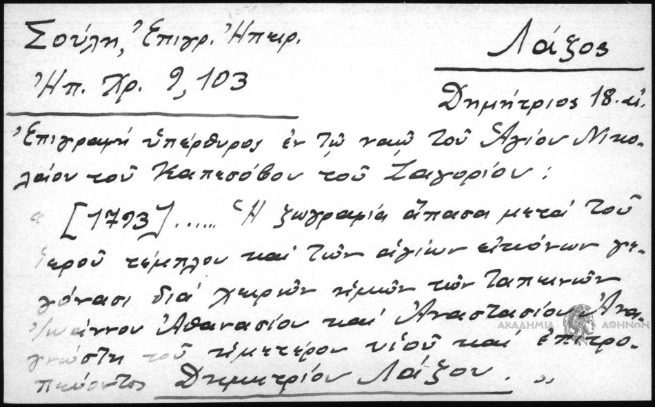 - Προσωπογραφικό και τοπωνυμικό αρχείο (15ος-19ος αι.)