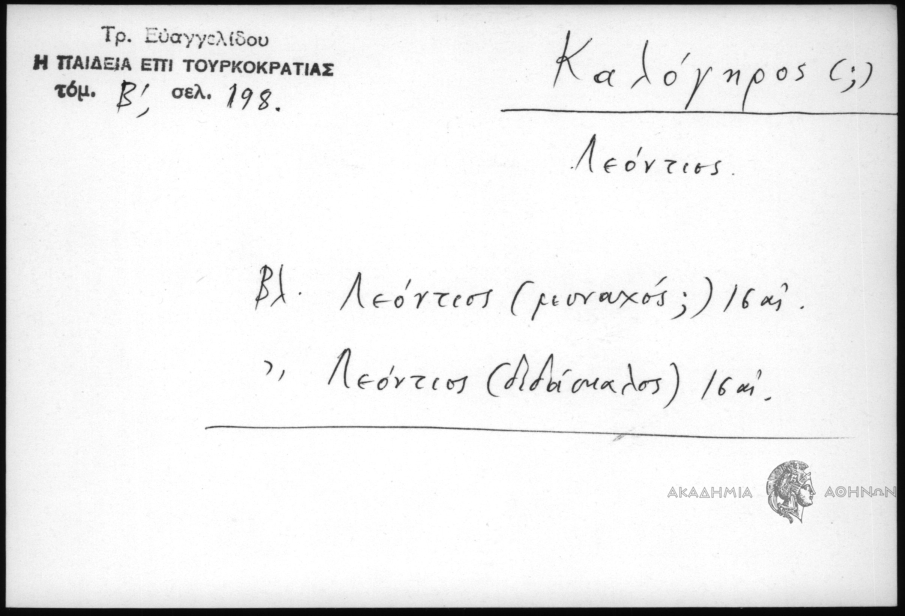 - Προσωπογραφικό και τοπωνυμικό αρχείο (15ος-19ος αι.)
