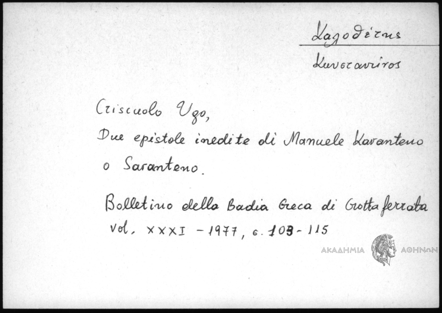 - Προσωπογραφικό και τοπωνυμικό αρχείο (15ος-19ος αι.)
