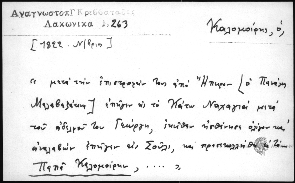 - Προσωπογραφικό και τοπωνυμικό αρχείο (15ος-19ος αι.)